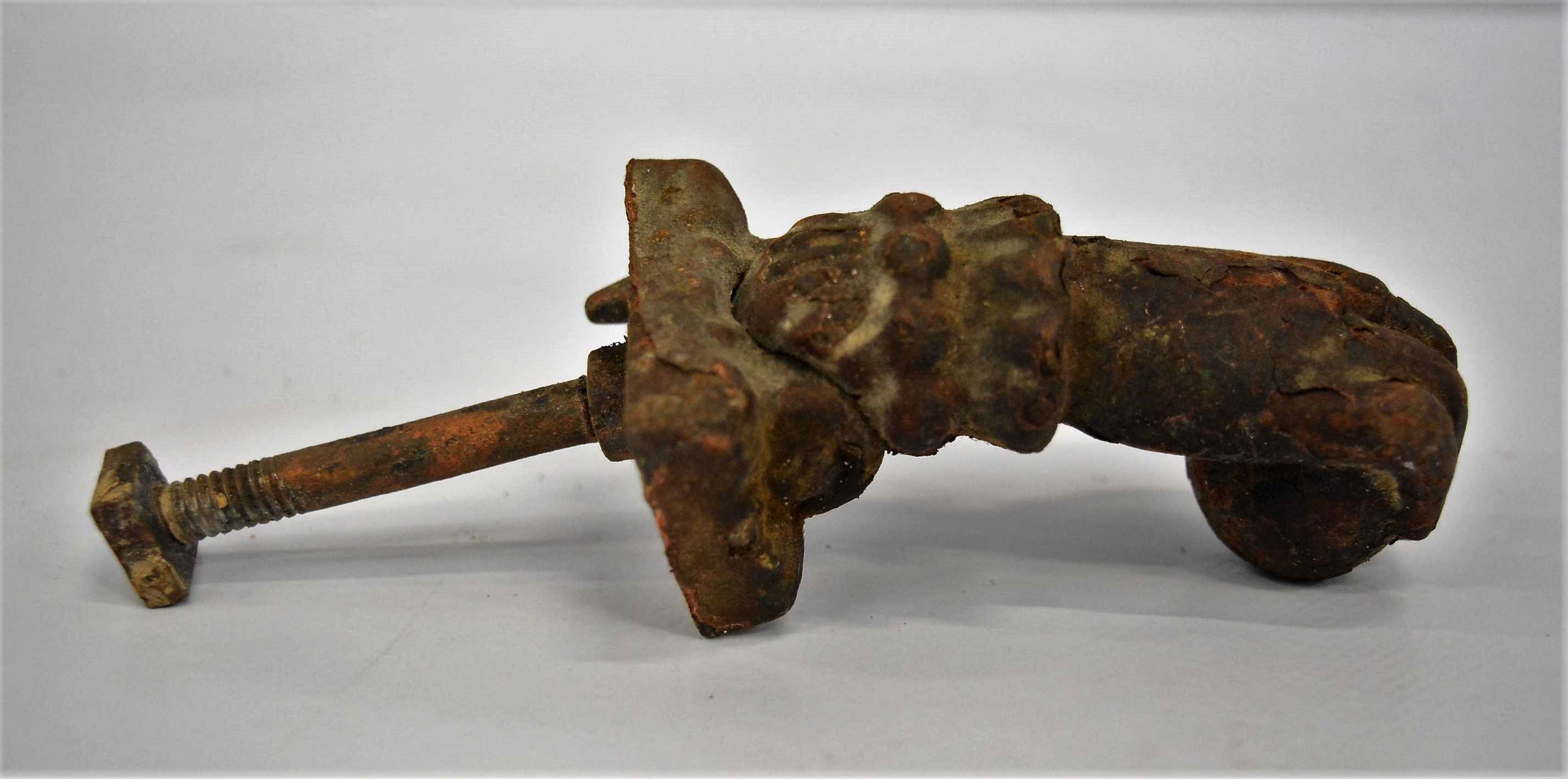 Llamador antiguo de metal para puertas.