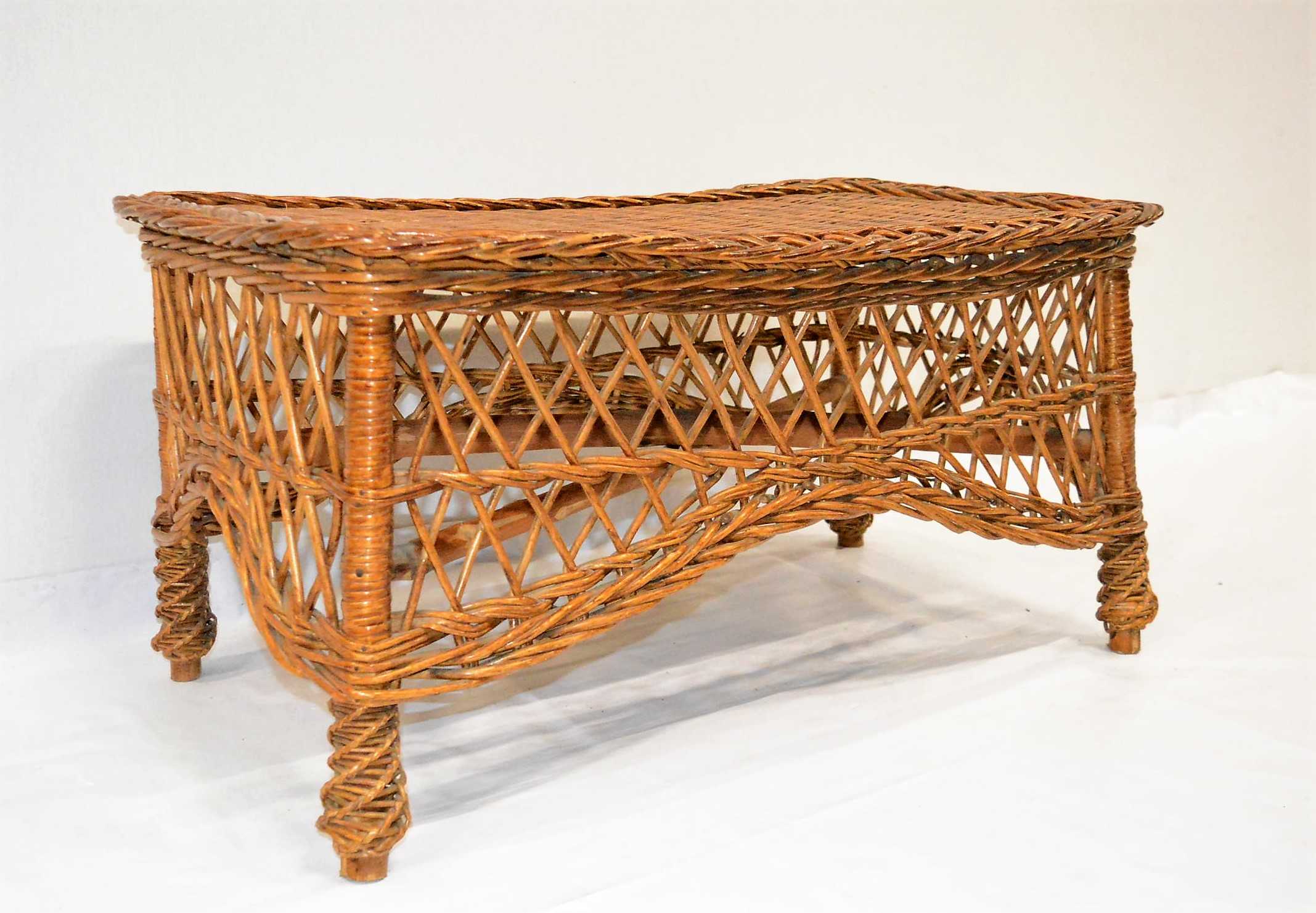 Mesa de mimbre. Ideal para espacios exteriores.
