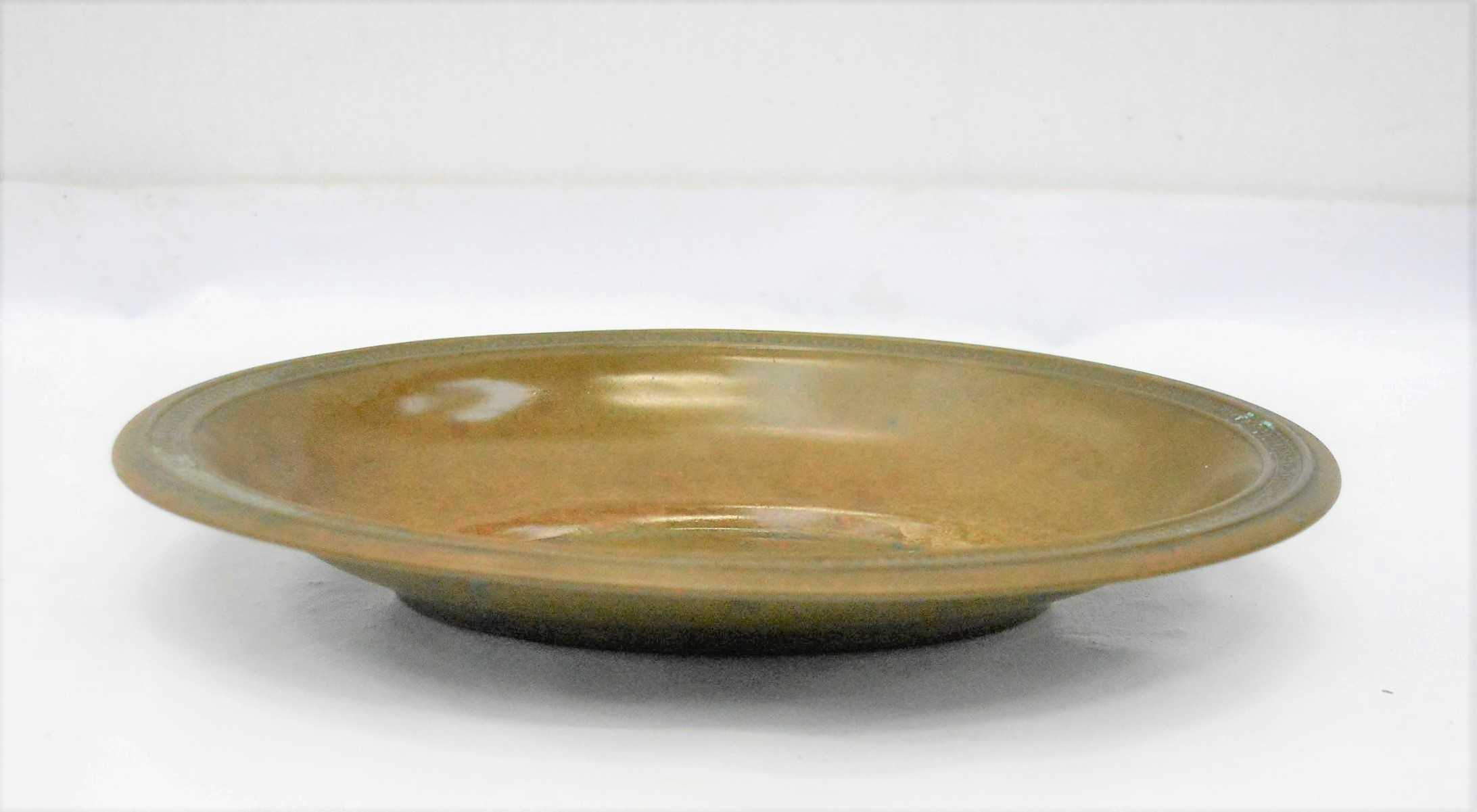 Antigua fuente de metal con forma ovalada. Ideal para decoración.