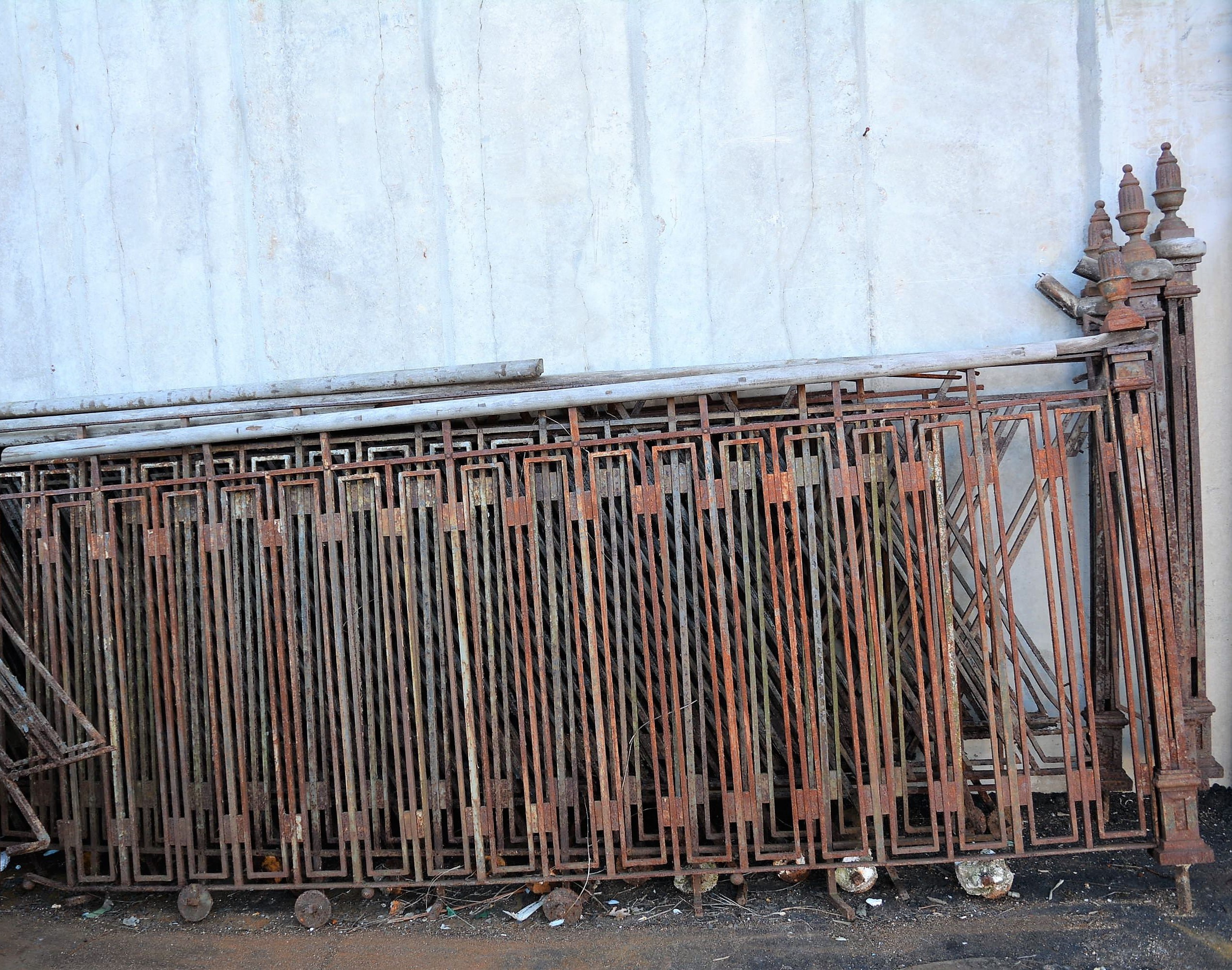 Antigua barandilla de hierro para escalera con pasamanos de madera. Se encuentra dividida en 8 tramos rectos de 2,5 metros de longitud con sus correspondientes tramos de descansillo.