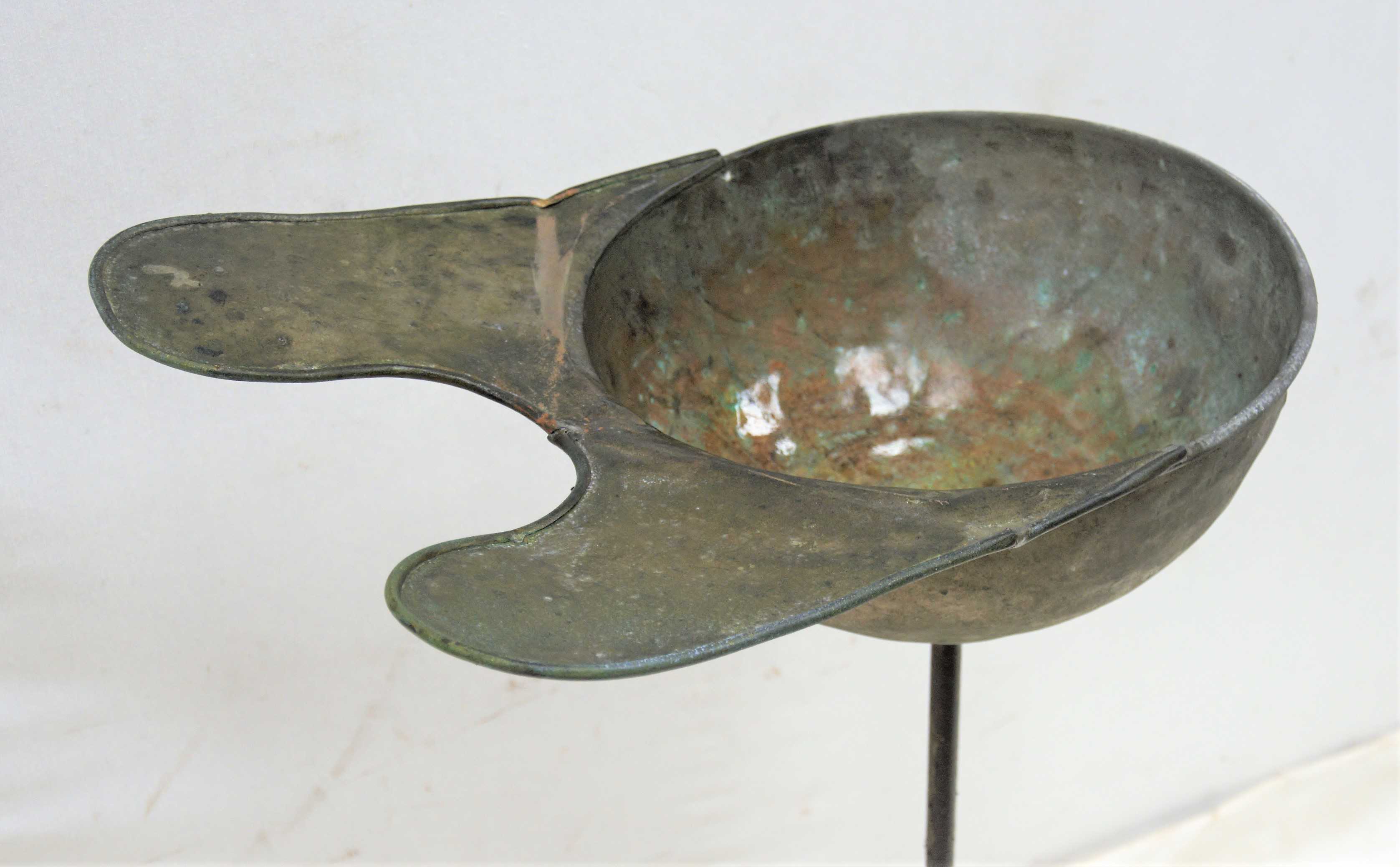 Antiguo lavacabezas metálico de peluquería o barbería con grifo de desagüe.