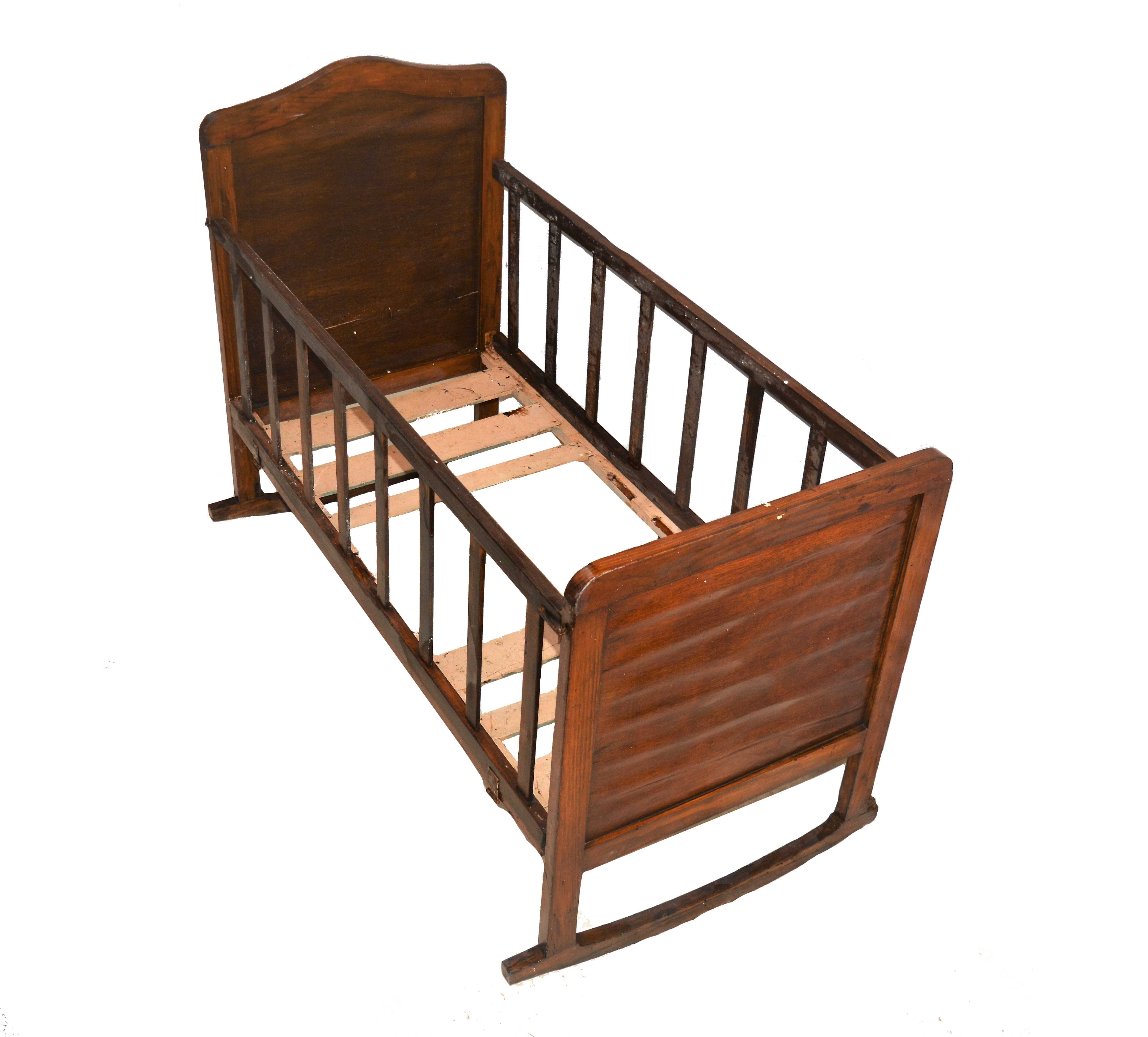 Antigua cuna de madera portatil plegable, cuyas dimensiones cuando está recogida son: