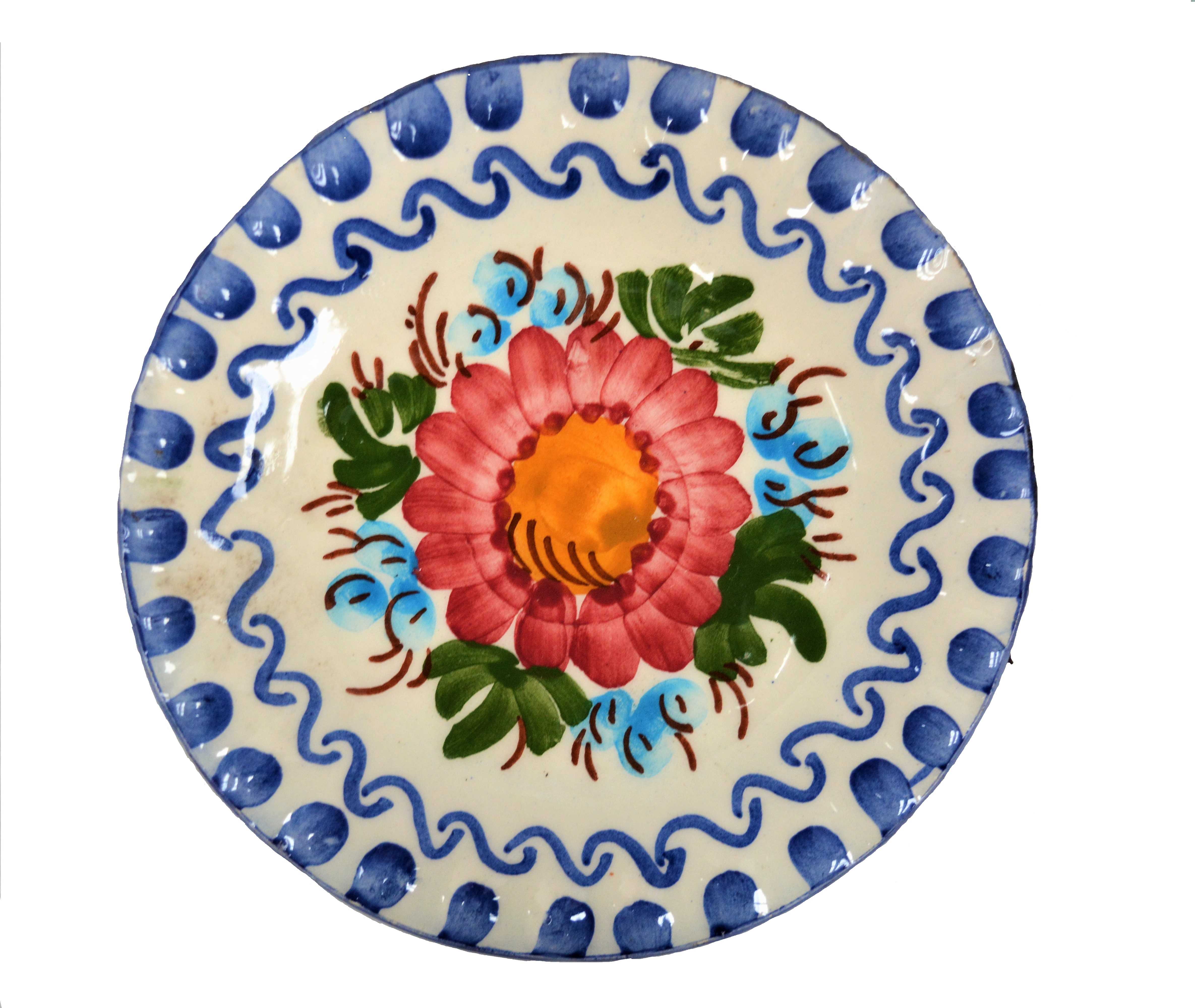 Platos cerámicos pintados con motivos florales para colgar en la pared.